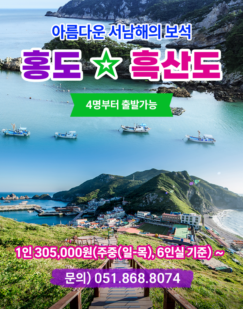 홍도 ☆ 흑산도 1박2일 (주중~주말)